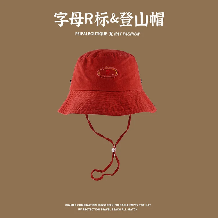 Summer Burr Embroidered Alphabet Climbing Hat Outdoor Travel Men and Women Sunshade Leisure Windproof Lace Bucket Hats
