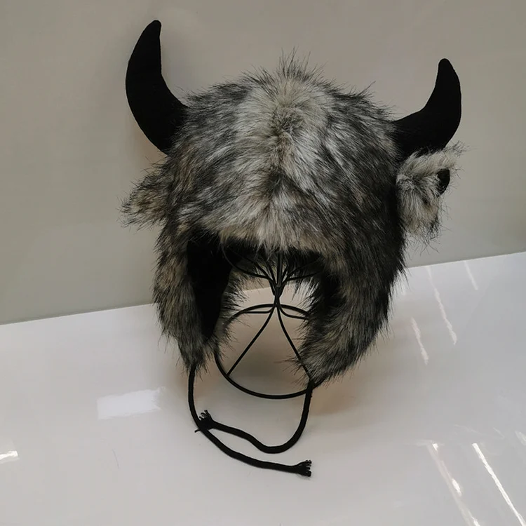 Autumn and Winter Men's and Women's Warm Fur Cowhorn Hat Thickened Windproof Pullover Hat Cap