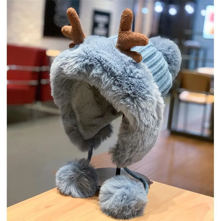 Hat Women's Autumn Cap Winter Antlers Hairball Ear Protection Furry Christmas Thickened Cycling Cute Fashion