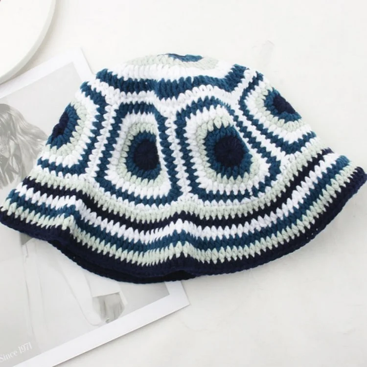 Niche Retro Contrasting Color Knitted Women's Cap Spring and Autumn Fashion Versatile Korean Personalized Plaid Bucket Hats