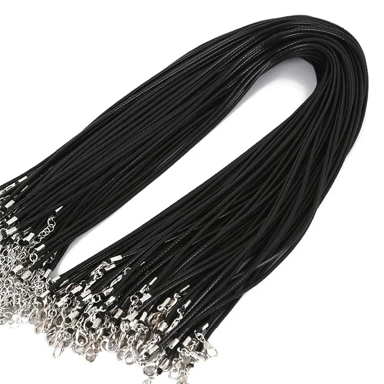 100 pz/lotto Bulk 1.5MM 2MM Black Wax Leather Snake collane Cord String Rope Wire Extender Chain per la creazione di gioielli all'ingrosso