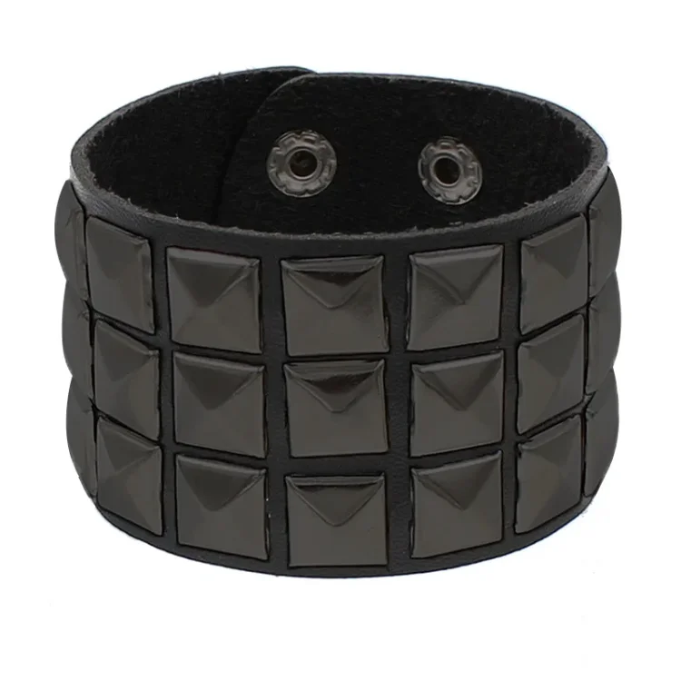 New Punk Men Black Cuff Leather bracciale Wristband Metal rivetti Stud Charm Bangle per le donne Rock Gothic Jewelry 2024