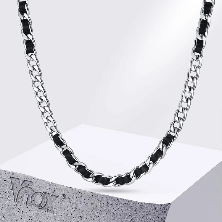 Vnox Cool PU Leather collane a catena intrecciata in metallo per uomo, collare a catena Color argento nero, collane a maglia cubana Miami Curb