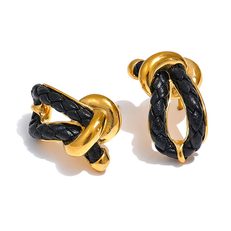 Yhpup Red Black White Leather Knot Geometric Hollow Stud Earrings Trendy Stainless Steel Water Resistant Stylish Unique Jewelry