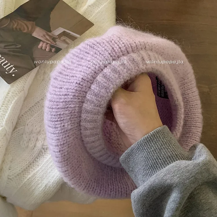 2002 New Japanese Mohair Knitted Beret Women's Autumn and Winter Fashion Elegant Plush Art Painter Hat Warm Hat