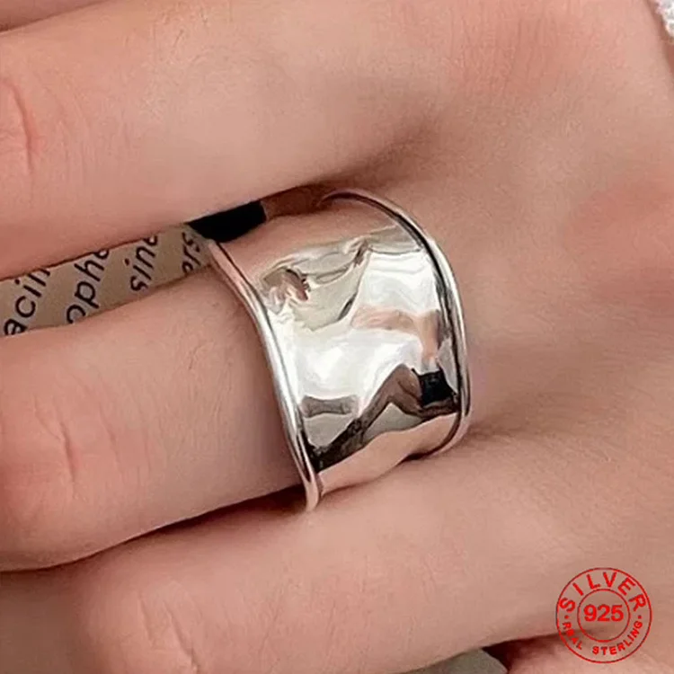 BFCLUB anelli Color argento per le donne anello retrò irregolare fatto a mano geometrico semplice ampia nuova allergia alla moda per il regalo di compleanno