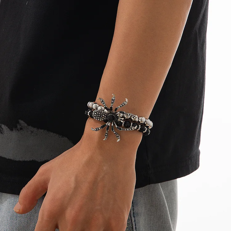 Ingemark multistrato Goth catena di perline elastiche per uomo a mano retrò Big Spider Charm Bangles Halloween Male Festival Jewelry nuovo
