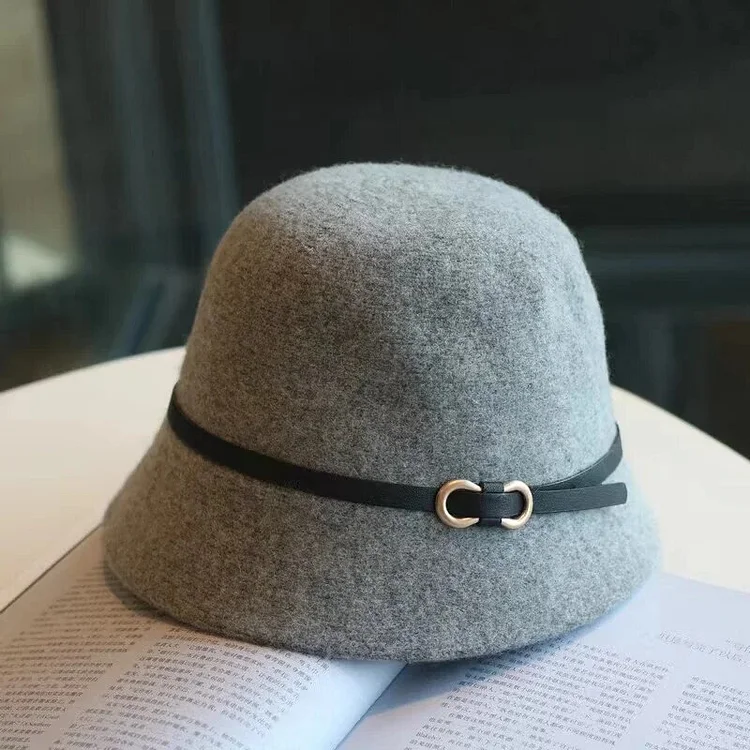 New wool bucket hat Women's warm autumn and winter thickened fisherman's hat Panama plush basin hat Women's hat