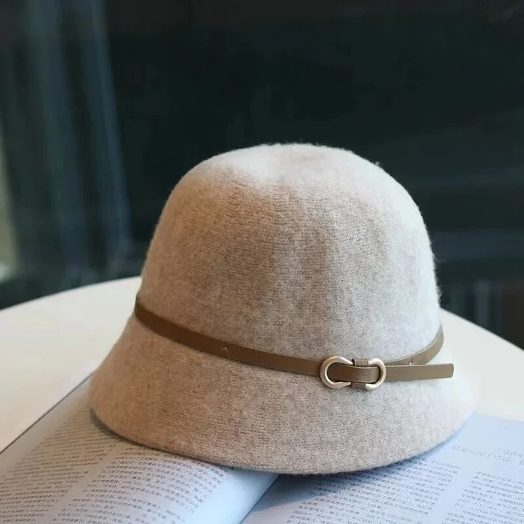 New wool bucket hat Women's warm autumn and winter thickened fisherman's hat Panama plush basin hat Women's hat