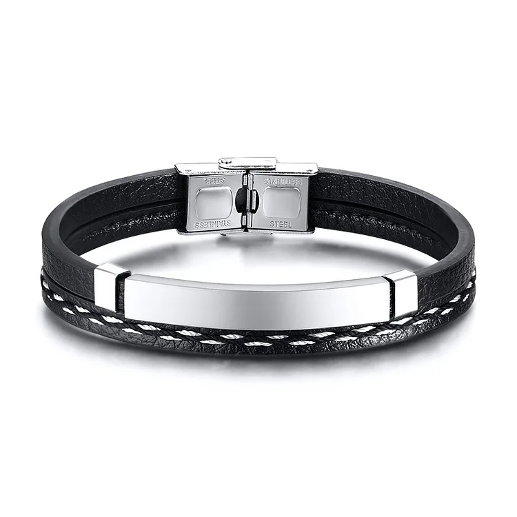 Vnox Braccialetti con data con nome personalizzato gratuito per uomo Marito Papà Nonno, Bracciale rigido in pelle PU nera, Regalo personalizzato delicato