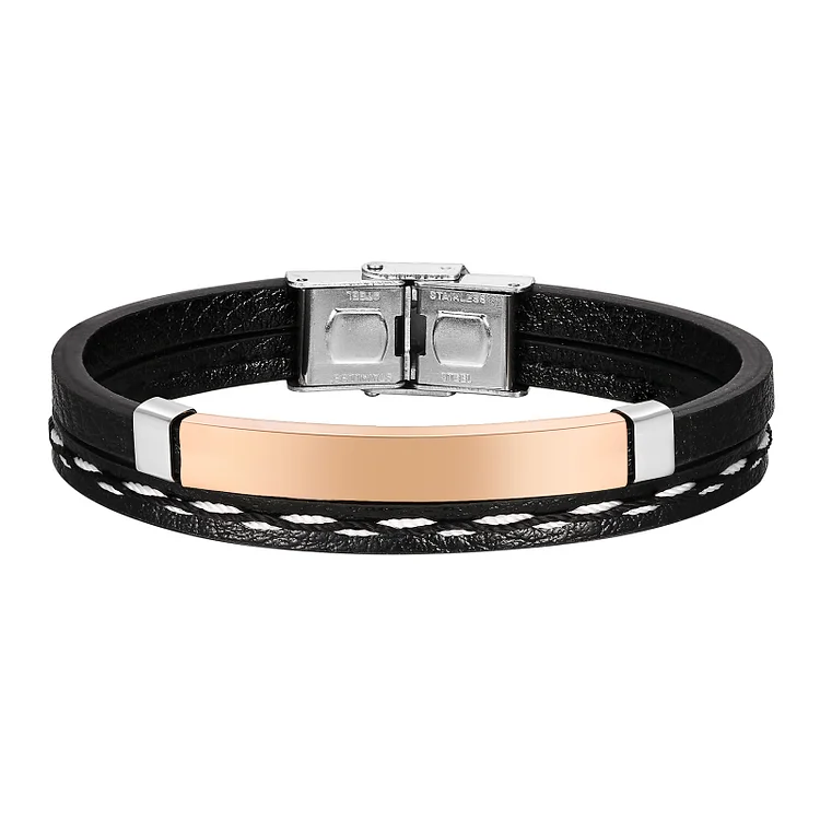 Vnox Braccialetti con data con nome personalizzato gratuito per uomo Marito Papà Nonno, Bracciale rigido in pelle PU nera, Regalo personalizzato delicato